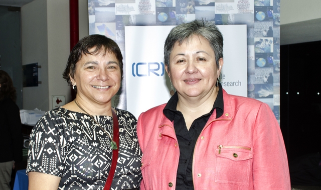 Por su parte, la doctora Laura Farías (en la foto, junto a la Dra. Gallardo), comentó que desde el punto de vista local y regional, para saber cómo estamos afectando un sistema biogeoquímico muy acoplado, en tanto a nuestra emisión y cómo podemos mitigar su efecto, "es muy importante entender el clima regional, como región del Biobío y cómo afecta el clima global".