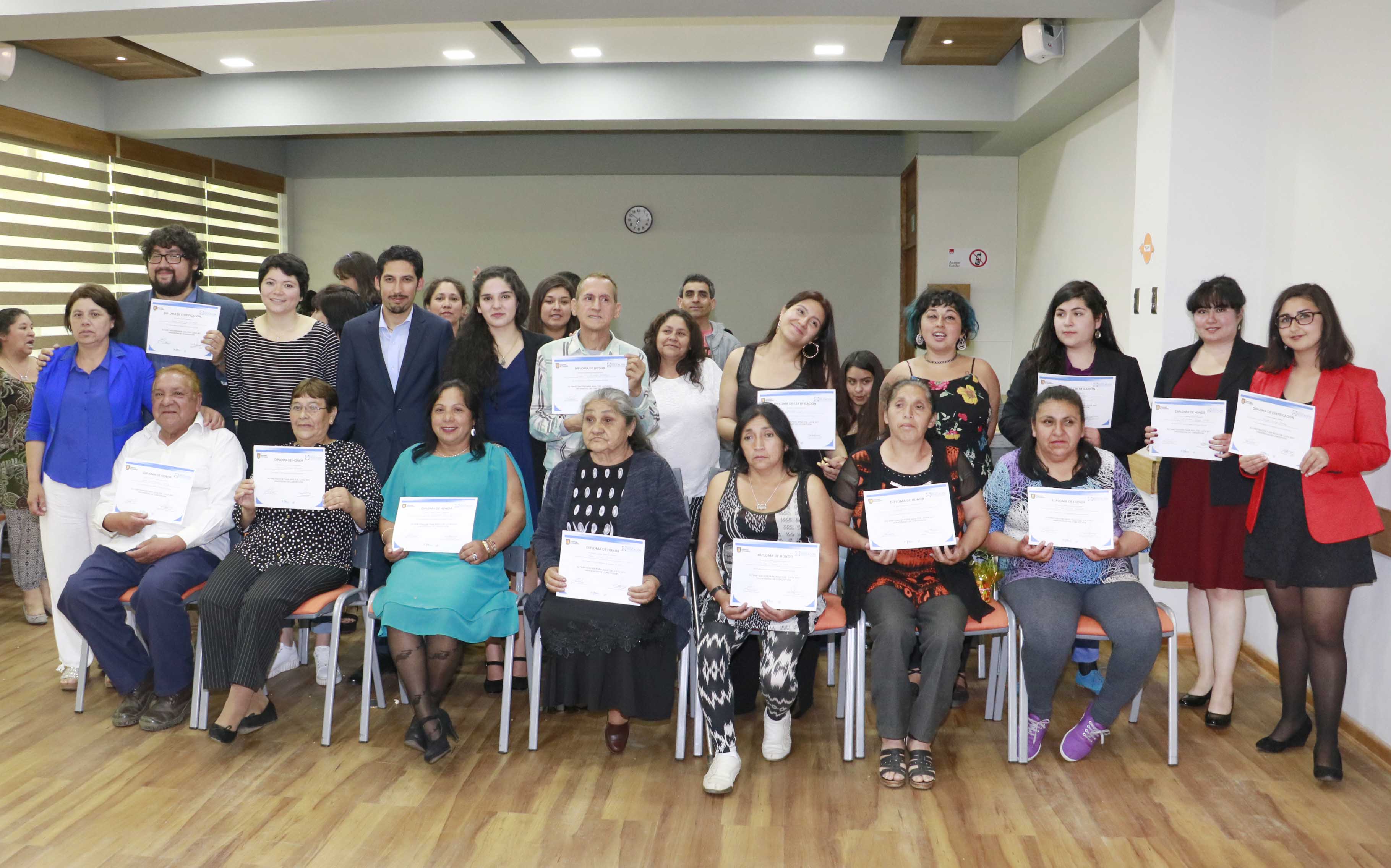 El grupo de graduados estuvo conformado por diez estudiantes, ocho de ellas mujeres, de la Caleta Fuerte Viejo y de la población Gabriela Mistral de Lota, todos mayores de edad y varias de ellas abuelas, quienes estuvieron acompañadas de sus familiares y amigos. Además, se entregaron certificados a los monitores, estudiantes de distintas carreras de Pedagogía, que estuvieron a cargo de impartir las clases.